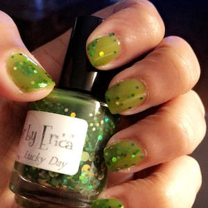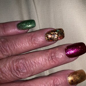 This listing is for One full sized nail polish (0.5 oz/15 ml). All my polishes are 5 free and cruelty free. There is a full ingredients list in my policies section. I do not use any commercial products or polishes in my bottles. I hand mix every bottle myself so there will be some slight variations from bottle to bottle. All bottles come with 2 stainless steel mixing balls. I recommend using a base coat and a top coat to provide shine and longevity to your manicure!
