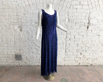Vintage 20s blue silk fringe flapper dress evening gown | 1920s fringe flapper dress