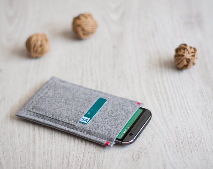 HTC U11, One M9, M9+, HTC 10, M8 M7, One Mini cover case sleeve with pocket, grey felt with color accent