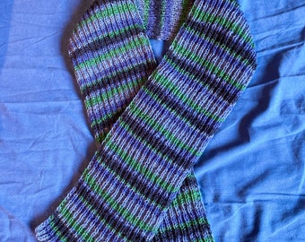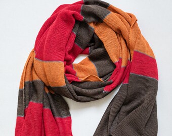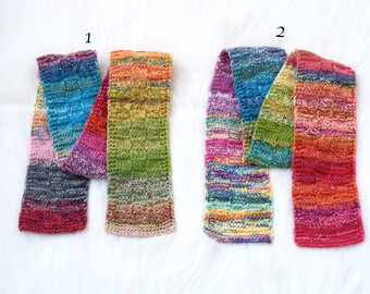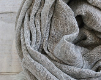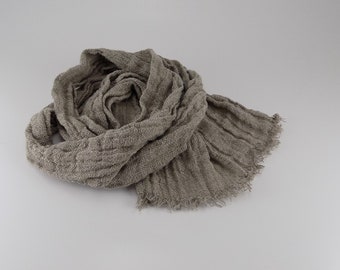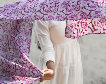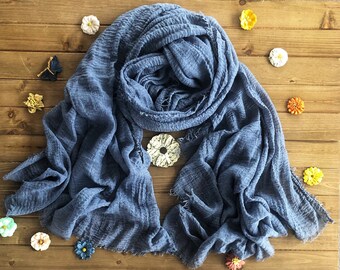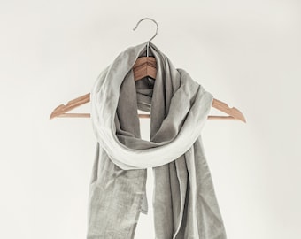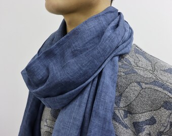 Toddler scarf, natural linen scarf, autumn spring scarf, eco friendly 140x30cm (55.1x12inch), blue and yellow bunny blockprint.
