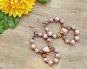 rhodonite gemstone beaded double hoop earrings / bohemian artisan hoop earrings / handmade jewelry / dangle earrings / boho earrings