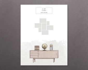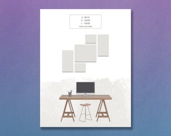 These files are digital Photoshop templates which can be customized in the following ways: you can change the wall color, move the furniture, re-arrange the frames, or create entirely new picture wall displays. You will need Photoshop to customize these templates. They are perfect for photographers who want to show their clients what different print sizes will look like in their homes, or for anyone who wants to see what a certain picture arrangement will look like before they start putting holes in their walls.