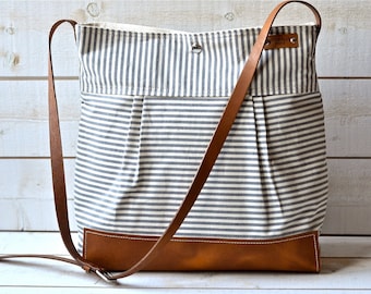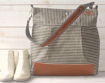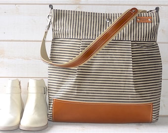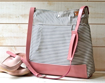 BEST SELLER Diaper bag / Messenger bag STOCKHOLM Gray geometric nautical striped Leather / 10 pockets Featured on The Martha Stewart