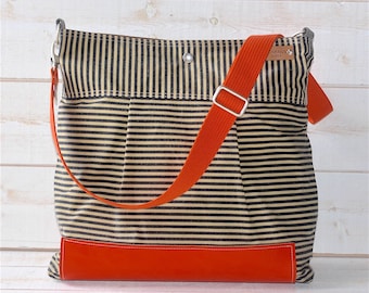 Diaper bag,Waxed canvas bag,Messenger bag, Stockholm striped bag,Gift for her,geometric bag,nautical striped,Gift for mom