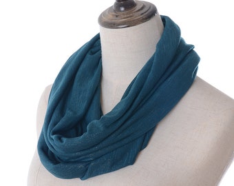 Infinity Scarf - Blue Japanese Floral - Cotton Jersey Fabric - Modern Fashion Accessory - Women Tweens Teens