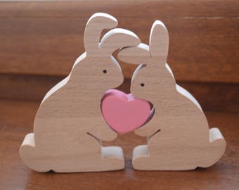 Three Wooden Rabbits // Wood Toy // Easter Gift // Waldorf Toy