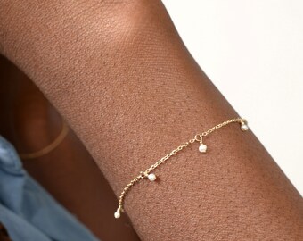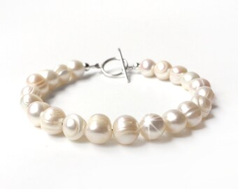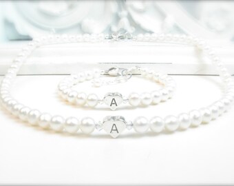 Flower Girl Freshwater Pearl Bracelet w/ Sterling Silver Initial Charm, Personalized Flower Girl Gift, White Cream Real Pearl Jewelry