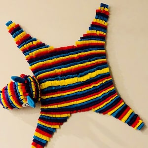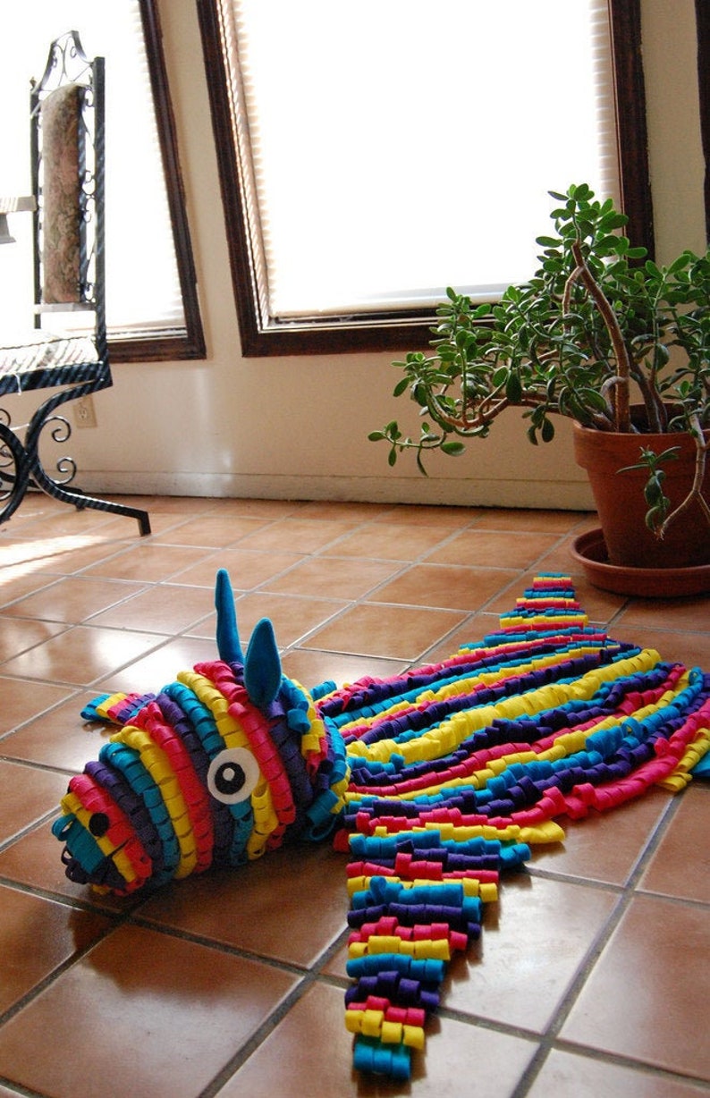 No piñatas were harmed in the production of this rug. Made from synthetic felt, approximately 3' long.
