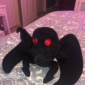 Mothman Plush - Moth Man - Soft Black Velour Mothman Plushie with Poseable Arms and Optional Pin-On Bow