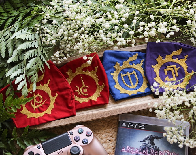 Mascarillas de trabajo de Final Fantasy XIV: mascarillas faciales de algodón bordadas personalizables de 20 x 13 cm para fans y jugadores de FFXIV.