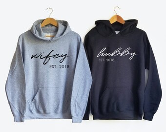 Wifey Hubby pullover hoodies - Wife and Hubs shirt, Newlywed shirt, Honeymoon shirt, Wife Hubby Couples shirt, Mr and Mrs, husband and wife