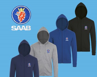 SAAB Zip Hoodie COTTON EMBROIDERED Logo Auto Car Sweatshirt Hoody Mens Clothing Clothes Gift Black Blue Friend Christmas Father Pullover