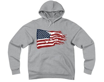 Tattered American Flag Unisex Sponge Fleece Pullover Hoodie