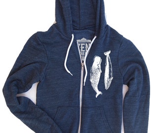 Unisex WHALES Classic Fleece Hoody XS (+ Color Options) Hand Screen Printed