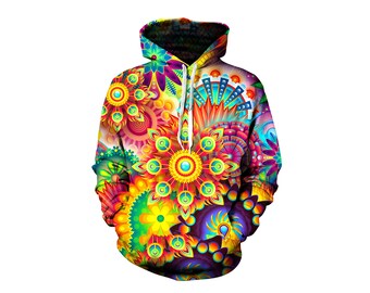 Psychedelic Art Hoodie - All Over Print Pullover - Detailed Graphics
