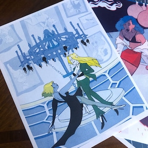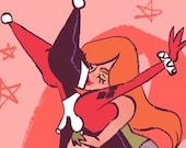 A small print on heavy cardstock of Harley Quinn and Ivy kissing based on their Batman the Animated Series designs. I made it to sell at Fan Expo Dallas and sold out of them in person!