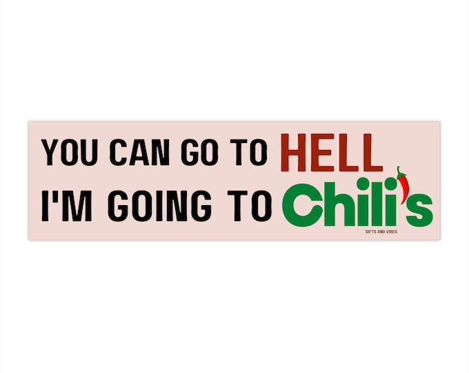 ¡Tú puedes irte al infierno, yo voy a Chili's! Divertida y extraña pegatina para el parachoques de Gen Z Meme para calcomanía de vehículo