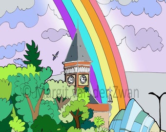 Big Rainbow Star Garland - made with wool blend felt in bright rainbow colours, perfect for kids room or birthday
