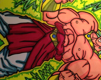 Boys Boom Pillow Cover, in bright blue with comic style boom sketch. Cushion / Pillow Cover 35cm / 14inch