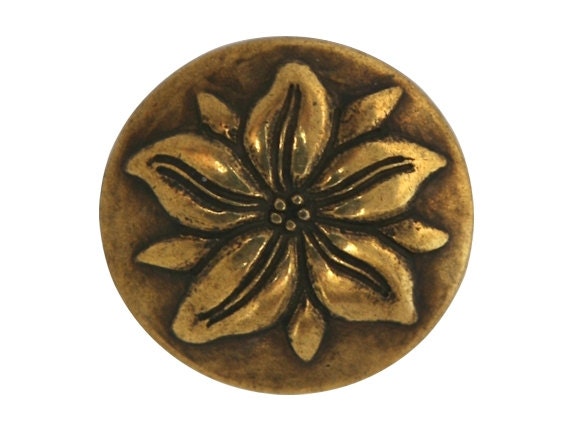 3 Poinsettia 3/4 inch (18 mm) Metal Buttons Brass Color
