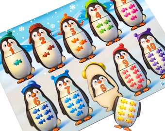 Waldorf - Montessori -Wooden -Rainbow- PEEK a BOO MEN- A Learning - Grasping - Counting- Sorting -Kids-Toy