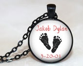 Custom Baby Feet with Name and Date -Pendant, Necklace or Key Chain - Mom, Dad, Grandma, Grandpa - Mother's Day, Father's Day - NEW Colors