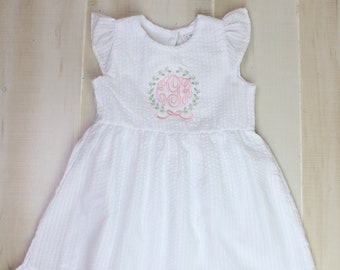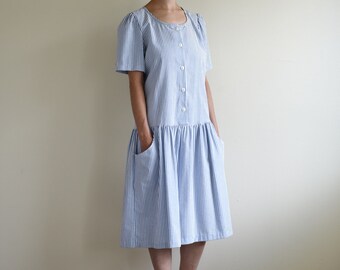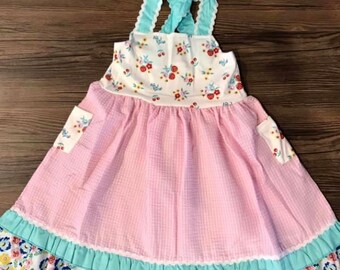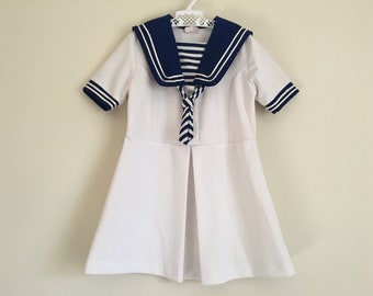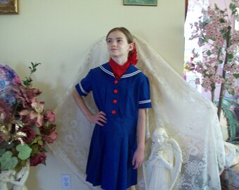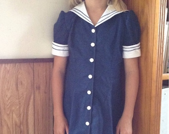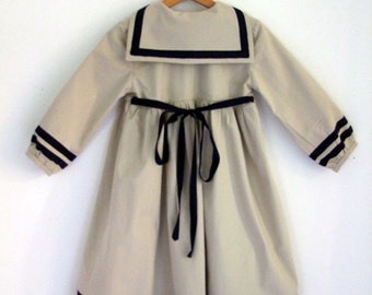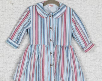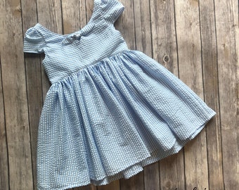 Girl's Sailor Dress - Light Blue/Red/White Stripe Seersucker in Sizes 4T, 7
