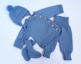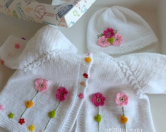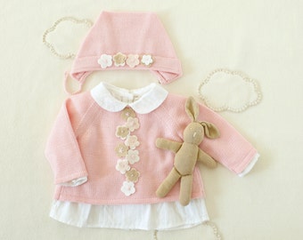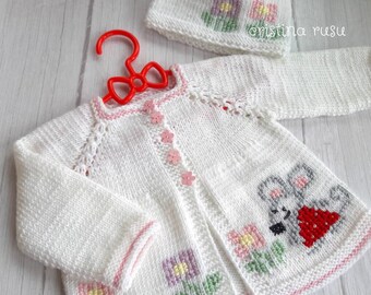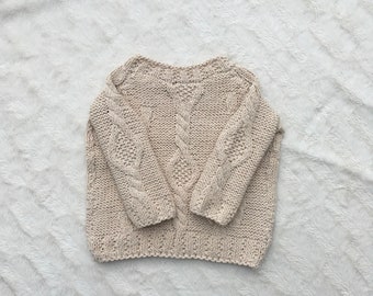 Knitted baby sweater, baby knit clothes, newborn knits. Off white. 100% merino wool. READY to Ship size 1-3 months.