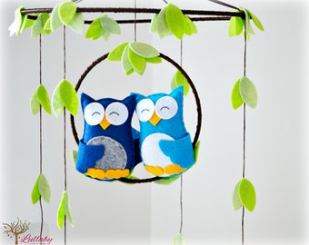 You will receive a mobile consisting of 1 "sleepy" owl perched on a hoop surround by leaves. Colors represented in the photos are Fern and moss green leaves, castle brown and brick red. I have wrapped the hoops in chocolate brown ribbon to look like branches.