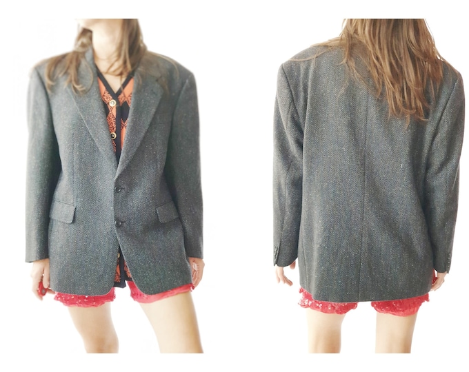 1980s wool suit jacket / Vintage unisex 80s 90s multicolor single breasted blazer
