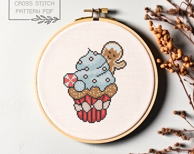 Christmas Cross Stitch Pattern Christmas Cross Stitch Chart Christmas Cupcake Simple Cross Stitch Instant Download Christmas Present