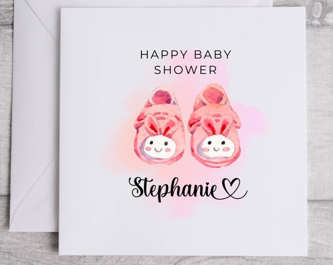 Personalised Happy Baby Shower Card. Mummy to be Baby Girl Pink Baby Shoes Card.
