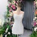 White Sleeveless Square Neck Backless V Back Ostrich Feather Skirt Mini Dress