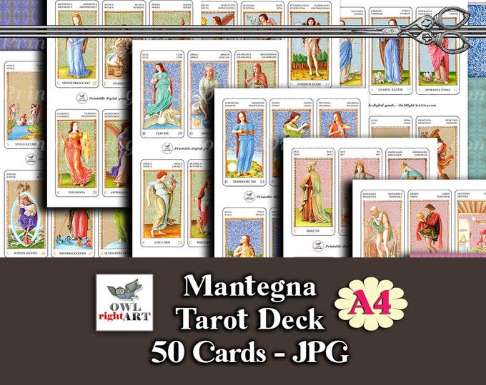 Medieval Mantegna Tarot Cards A4, Printable Italian Tarocchi 50 Cards, Downloadable Fortune Telling 15th Century Tarot Deck