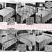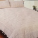 Knitting pattern, instructions to make a textured bedspread/blanket for a child's bed and matching cushions. The bedspread is made leaf motif squares joined together and the edging made separately and joined on.