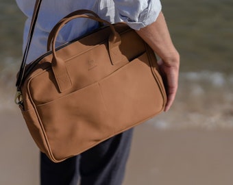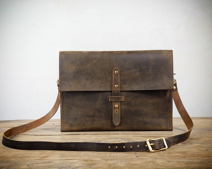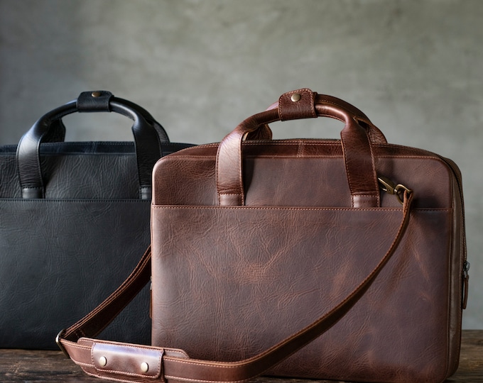 Personalized Top Grain Leather Travel 16” Laptop Bag Briefcase Satchel Portfolio Notebook Tablet Messenger Bag