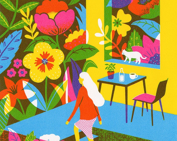 Ice Cream Truck with Gorilla Monkey Screenprint Art Print - Hand Printed Silkscreen Poster - Good for Kids Rooms & Nursery