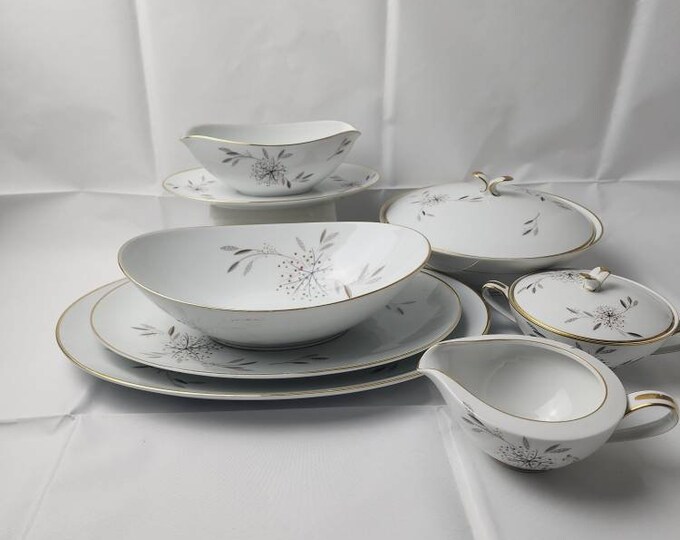 Noritake Helene Gold Rim Table Servers Set 7-Pc Server Set 1950's