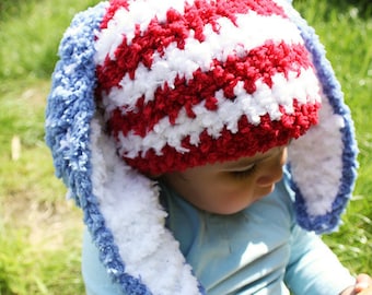 Red white and blue stripey cotton newsboy hat crocheted in 100% cotton yarn, this is one of my new favourite unisex designs for the summer and perfect for coodinating for the 4th July! My soft winter hats also make wonderful Christmas presents! Handmade with love by Babamoon ©