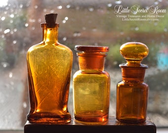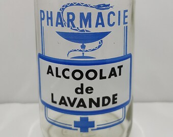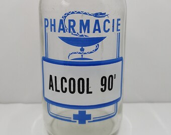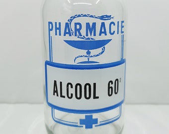 A beautiful genuine vintage pharmacy bottle, Apothecary Bottle with beautiful enamel Pharmacy symbol (aesculap) and inscription 'Acetone' in French... in good original condition. Nice find, interesting home decor piece, would make a nice gift for someone special!