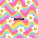 Retro wave daisies seamless repeating pattern - retro floral fabric design for sublimation