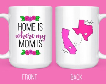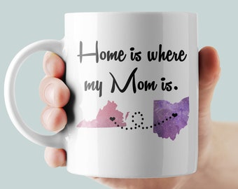 Home is Where my Mom Is Mug, Long Distance Mug, Mother's Day Gift, Mothers Day Mug, Gift for Mom, Mommy Mug, Gift for Grandma, States Mug