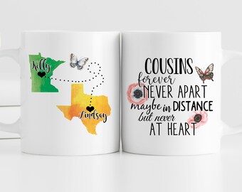 Cousins Long Distance Mug, Cousin Gift, State To State Mug, Moving Away Gift, Cousin Moving Gift, Best Friends Gift CFN1