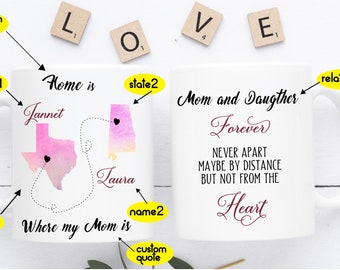 Long Distance Mug, State to State Mug, Custom Long Distance Mug, Mother Mug, Mother's Day Gift, Gift for Mom, Birthday Gift for Mom