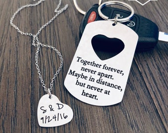 Together Forever Never Apart Maybe in Distance but Never at Heart, Deployment Gift, Long Distance, His and Her, Gift Set, Keychain, Necklace