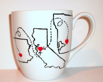 Long distance mug, best friends mug, state to state mug, mom mug, going away gift, dad mug, state mug, custom mug