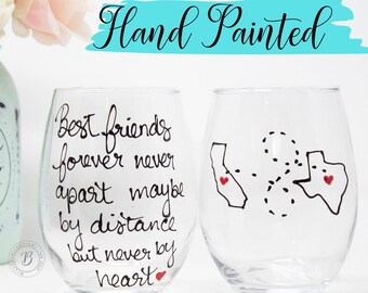 Best friend Gift, Wine Glass, Long distance Gift best friends forever Distance wine glass, I miss you gift, State Wine Glass, Christmas