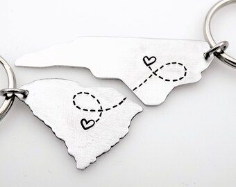 Pick any 2 states, Long distance Gift, Going away gift, LDR gift, Couples Keychain, Custom handstamped Long distance relationship going away