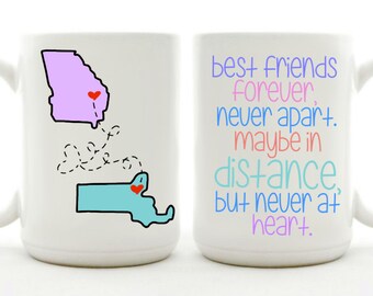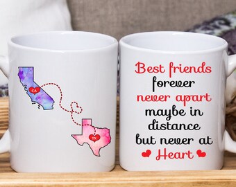 Best Friends Long Distance Mug, State to State Mug, Gift for Friend, Moving Away Mug, Moving States, Long Distance Relationship, L d r Gift
