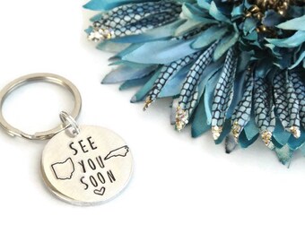 See You Soon Hand Stamped Keychain, Long Distance Relationship, Long Distance Gift